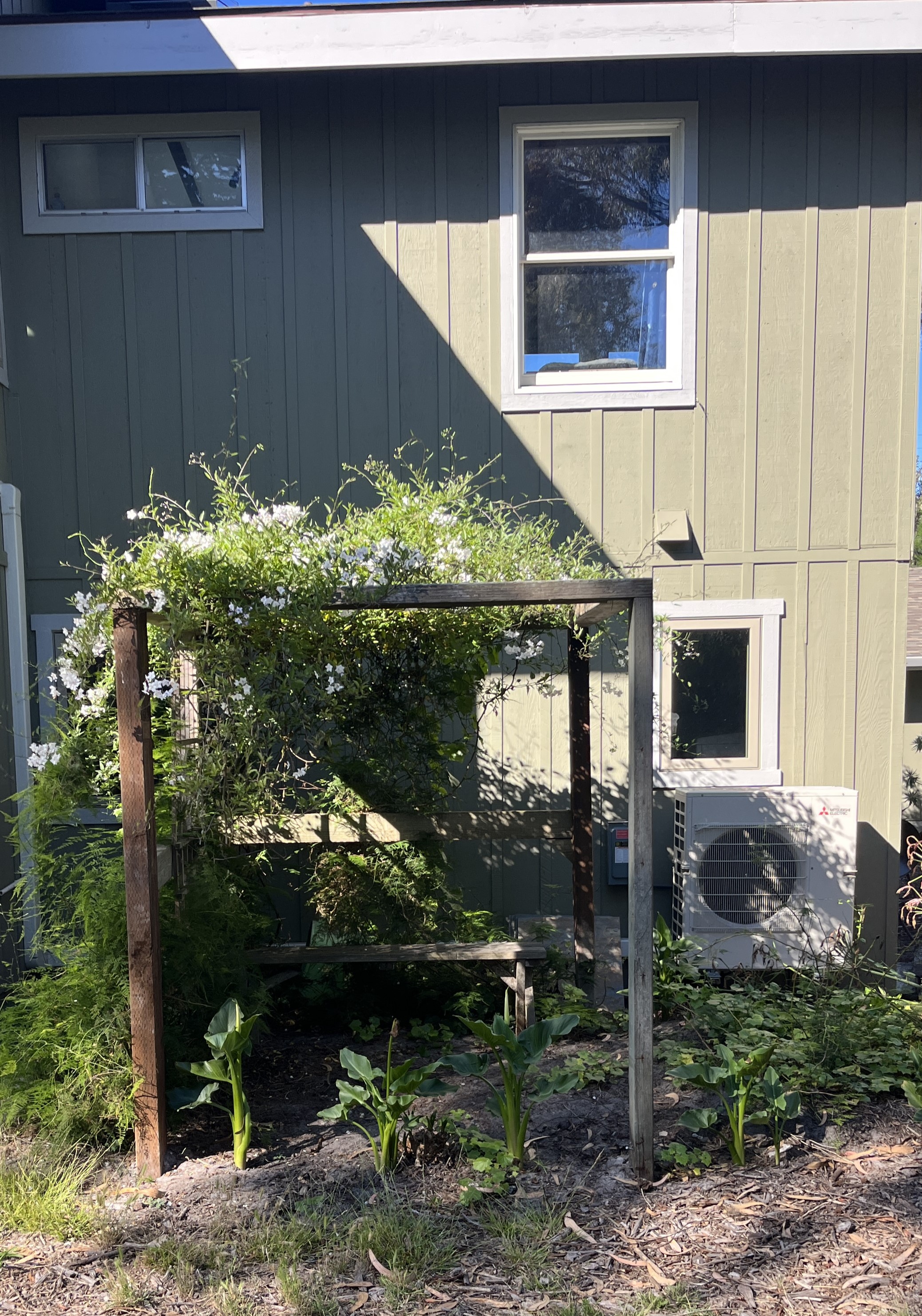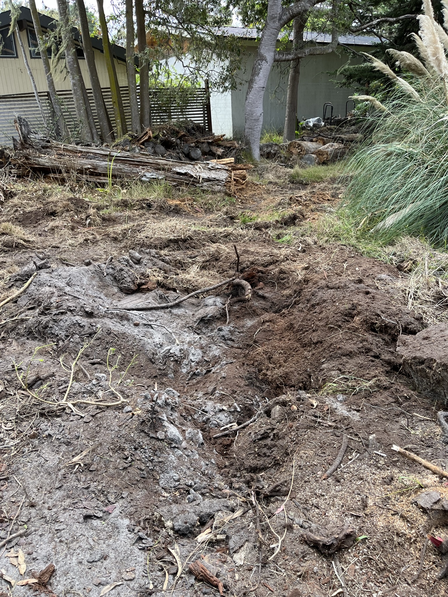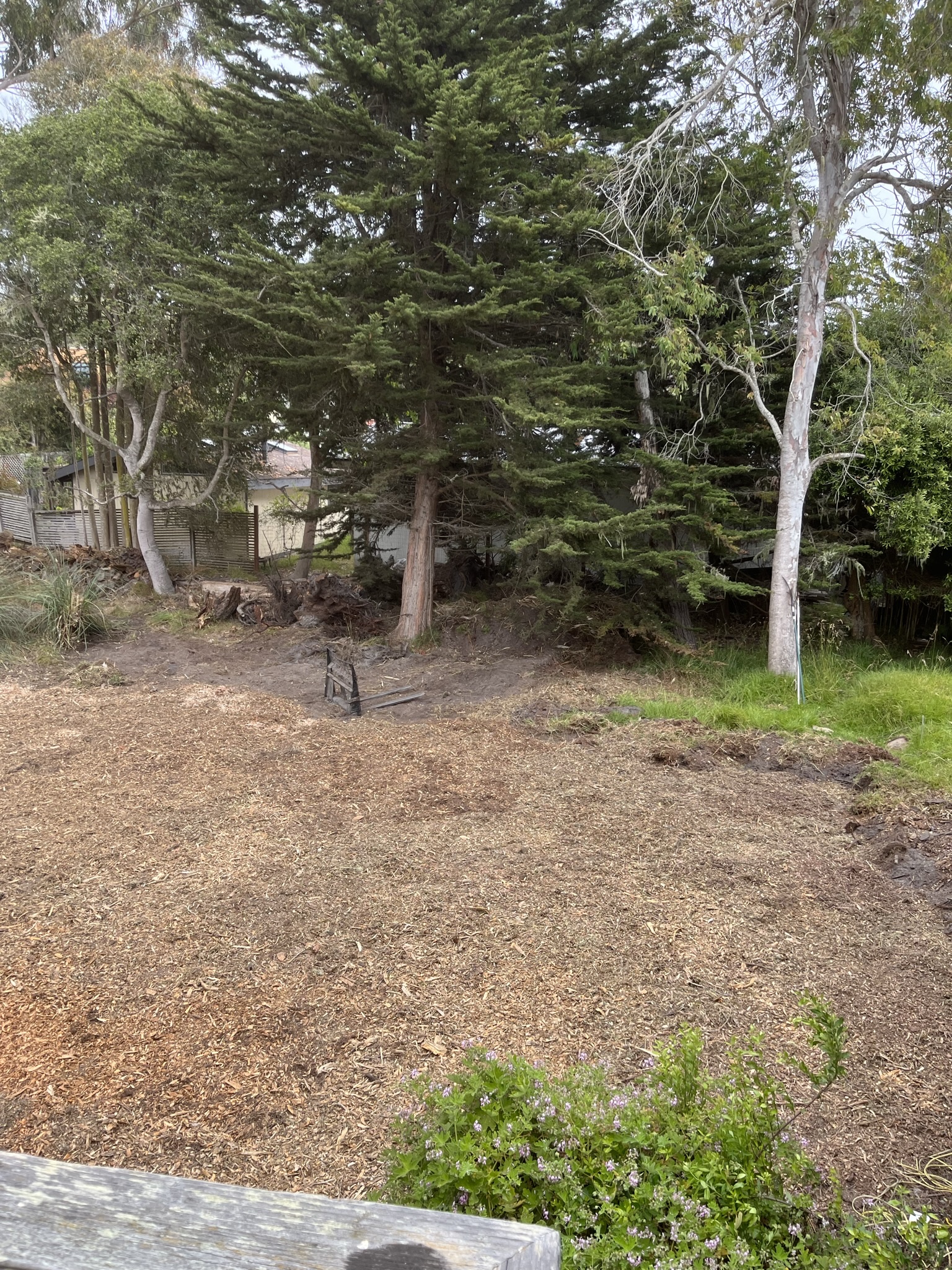 The backyard was a microcosm of coastal forest with barely navigable walking trails. A portion of it looked like Kansas in the Wizard of Oz. One tree crunched an outbuilding, but the house itself was unscathed.