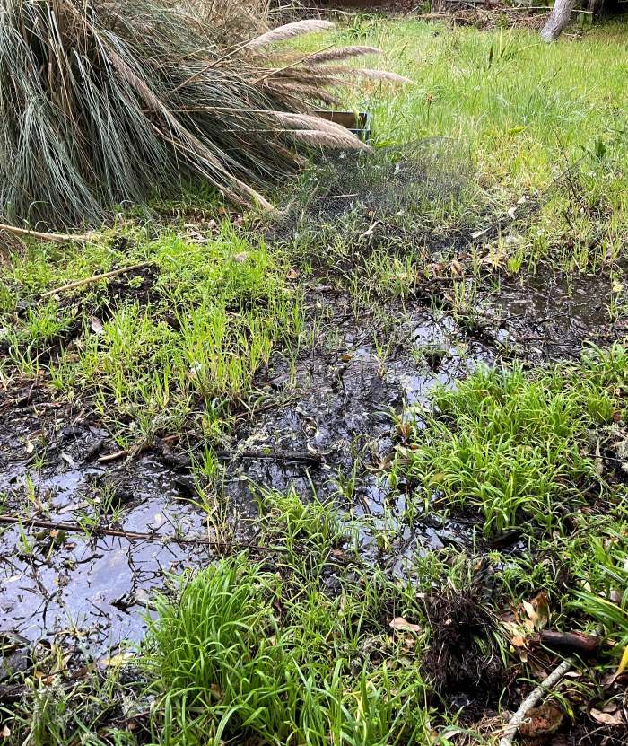 In the winter of 2022-23, after we'd cleared the biggest downed trees and heavy rains soaked the area, the coastal forest looked more like wetlands as a spring flowed prodigiously.